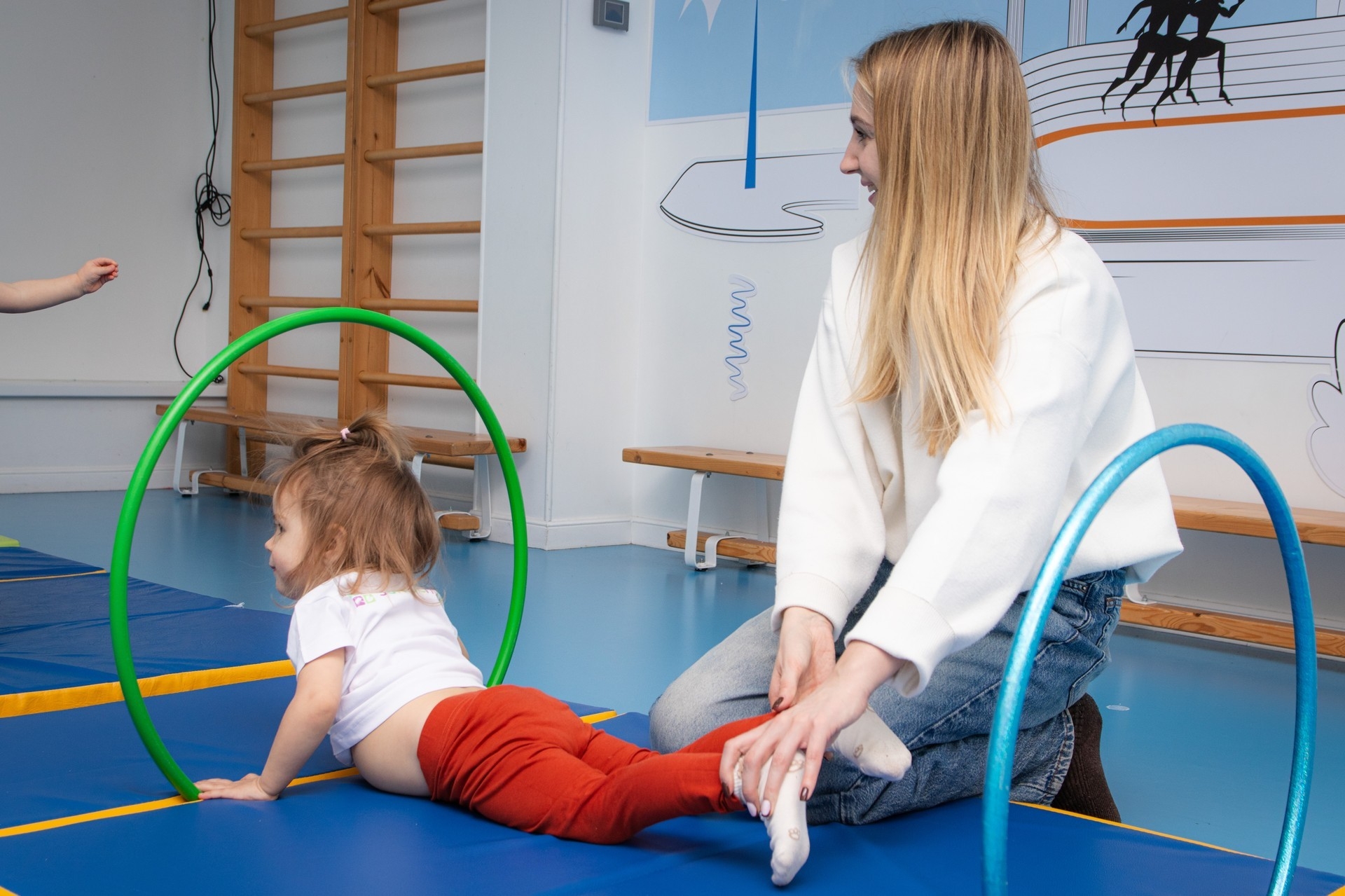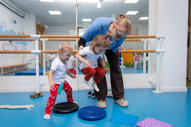 Такие тренировки проходят в виде увлекательных игр: малыши танцуют под весёлую музыку, бросают мячики и исследуют окружающий мир движением. Всё это происходит в заботливой атмосфере, где рядом опытный специалист.