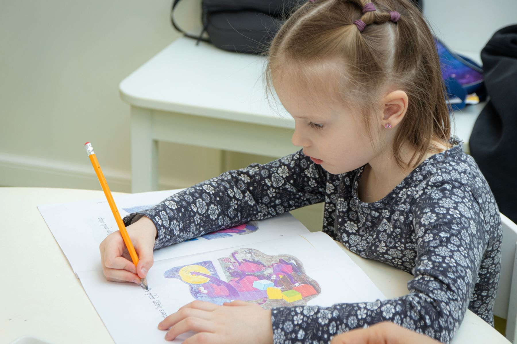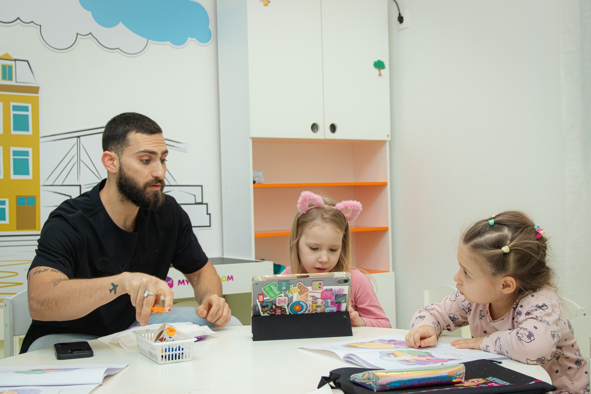 Во время групповых занятий Амин работает по системе обучения Jolly Phonics — это комплексная программа, основанная на проверенном, увлекательном методе обучения, который помогает детям читать и писать с раннего возраста.